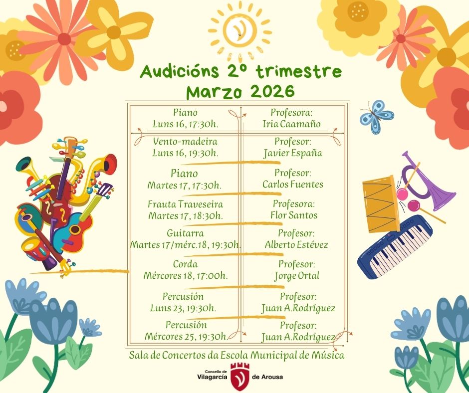 Aquí temos o programa das audicións do 2ºtrimestre do curso 2025-2026. Son abertas ao público ata completar capacidade.